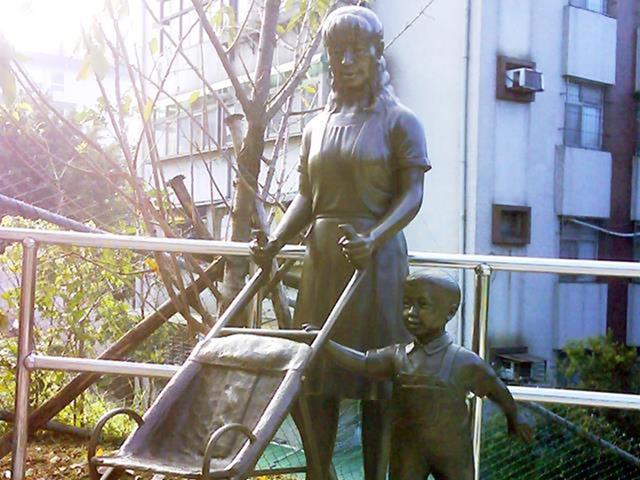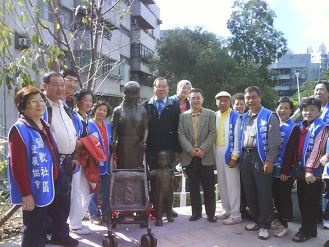 設置地點:安和親子公園 原型:泥塑 材質:鑄銅 時間:2008 創作意涵: 以藝術之型態來加深民眾對親子公園之印象,期許民眾能夠全家大小到親子公園遊憩踏青,藉以增進親子互動之甜蜜關係,本作品親子塑像設計之娃娃推車不但提供孩童坐在娃娃車上拍照留影,更顯現藝術與生活結合。 設計:金唐山設計工程 製作:金唐山設計工程 監造:基隆市政府