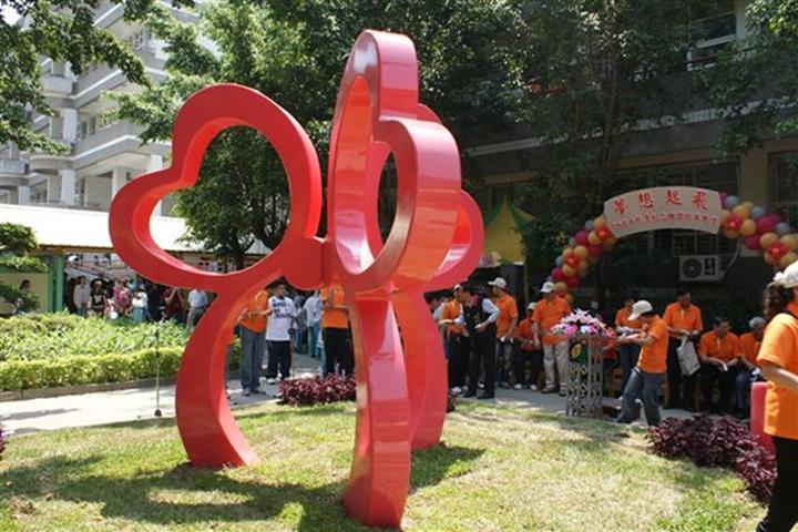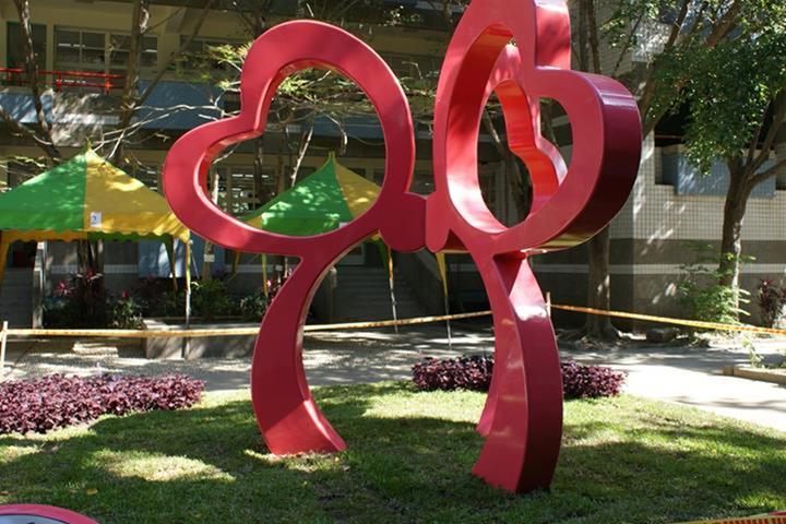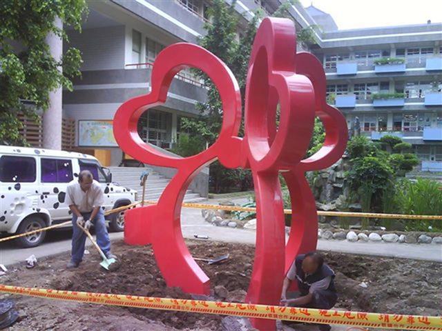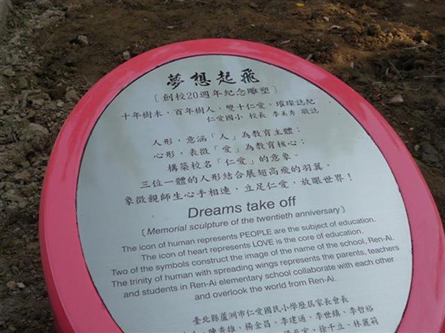 設置地點:仁愛國小 原型:木雕 材質:FRP 時間:2008 創作意涵: 人形,意涵「人」為教育主體; 心形,表徵「愛」為教育核心; 構築校名「仁愛」的意象。 三位一體的人形結合展翅高飛的羽翼, 象徵親師生心手相連,立足仁愛,放眼世界! 設計:金唐山設計工程 製作:金唐山設計工程 監造:仁愛國小