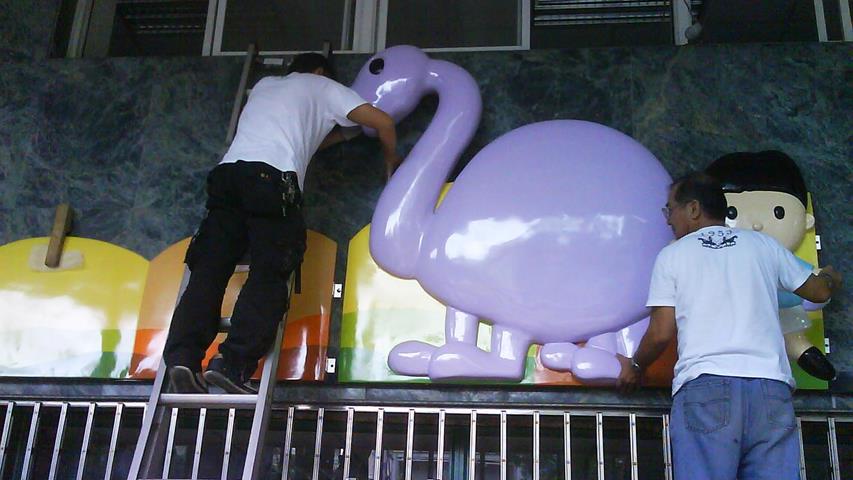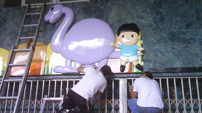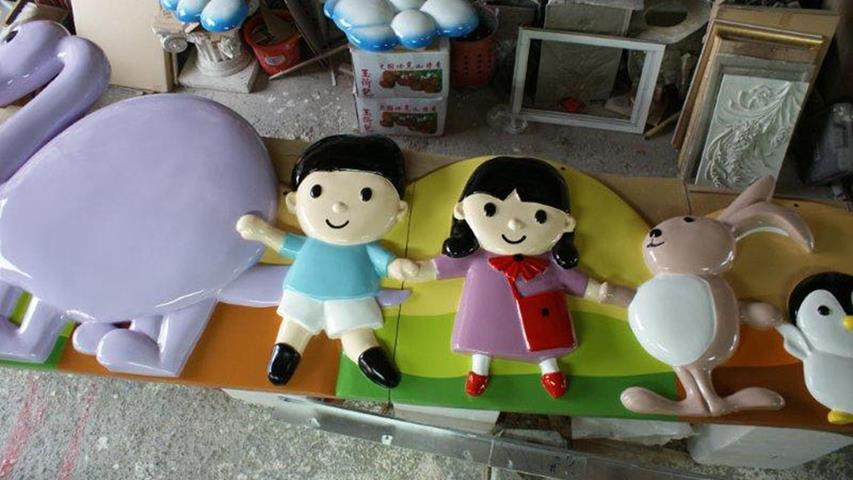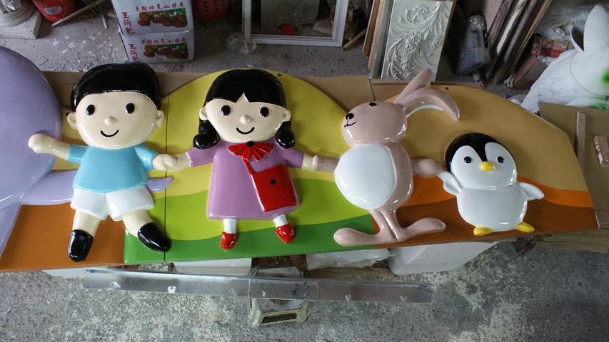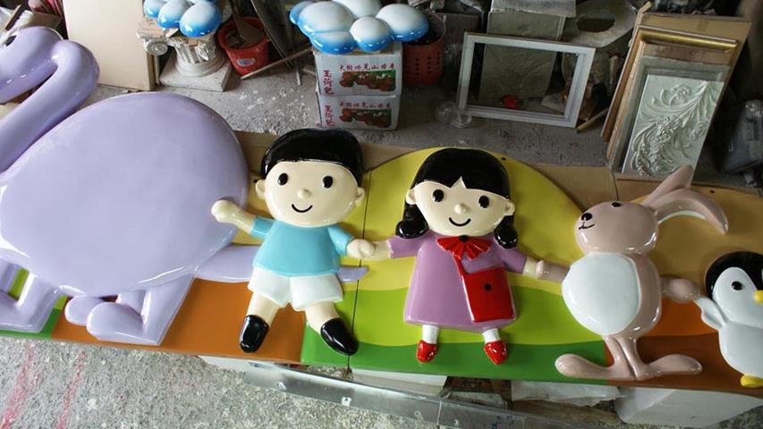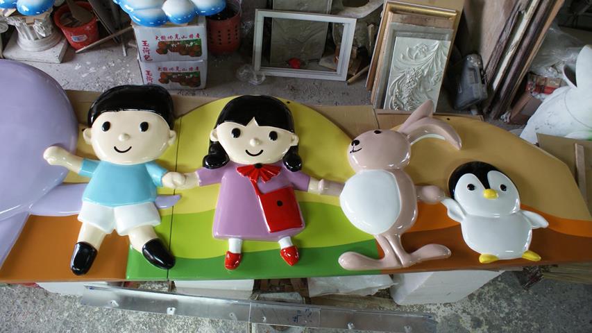 設置地點:士林附幼 材質:FRP、汽車烤漆 時間:2010 創作意涵: 作品設置於學校之主要入口,為幼稚園師生每天必經過之空間,利用現有之班別名稱轉換成活潑可愛之卡通造型,讓原本單調之牆面產生活潑而有趣之配置與組合,形成豐富趣味變化之視覺焦點,讓教學多元化,教育生活化,校園公園樂園並非夢想,讓小朋友天天快樂的成長,並形塑附幼獨特之意象。 設計:金唐山設計工程 製作:金唐山設計工程 監造:士林附幼