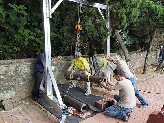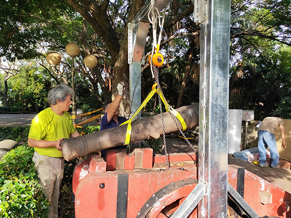 設置地點:紅毛城 材質:實心原木 時間:2019 設計:金唐山設計工程 製作:金唐山設計工程 監造:淡水紅毛城