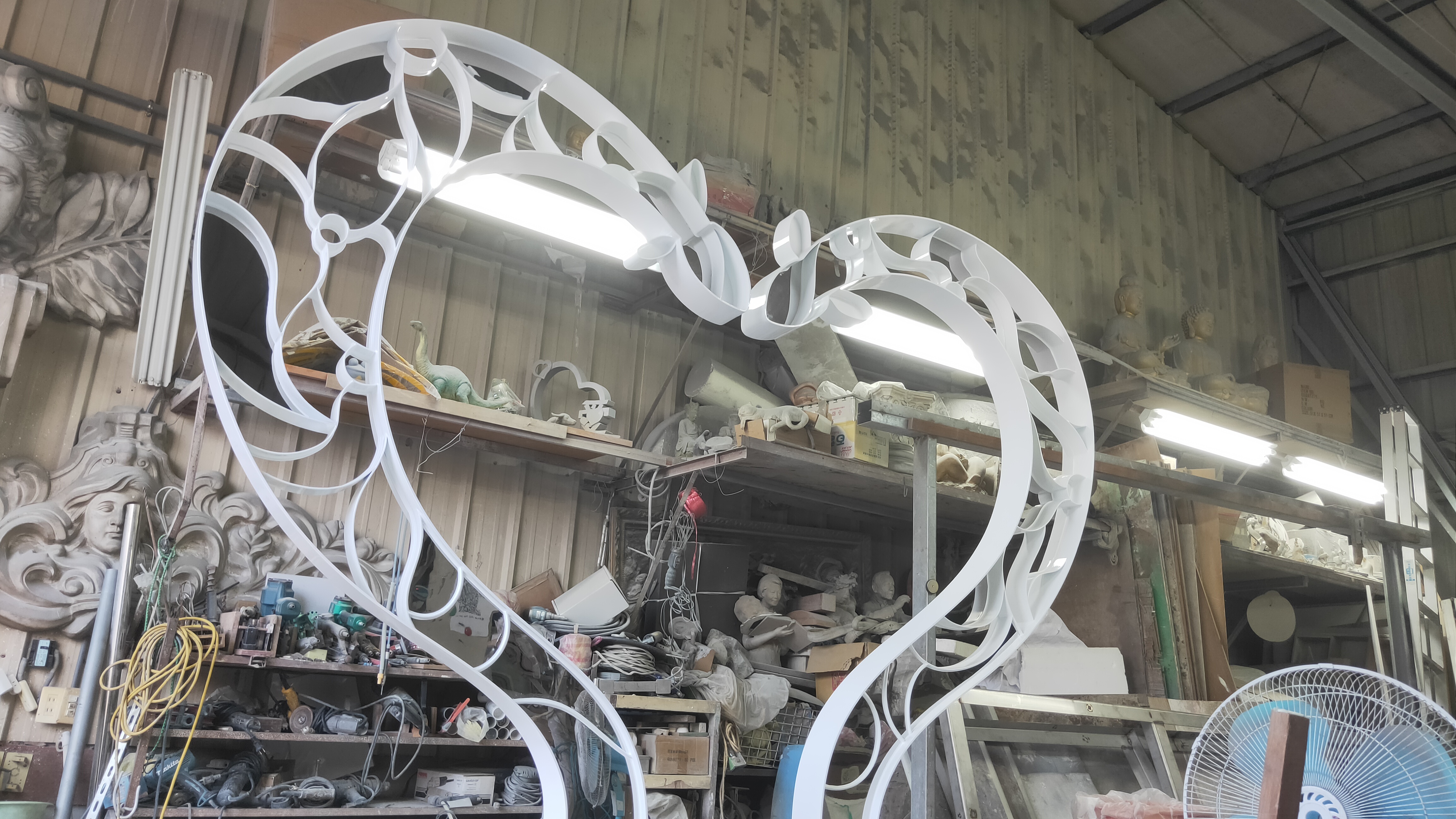 第一件:以地名「鱸鰻」為主要發想,透過鱸鰻的簍空線條