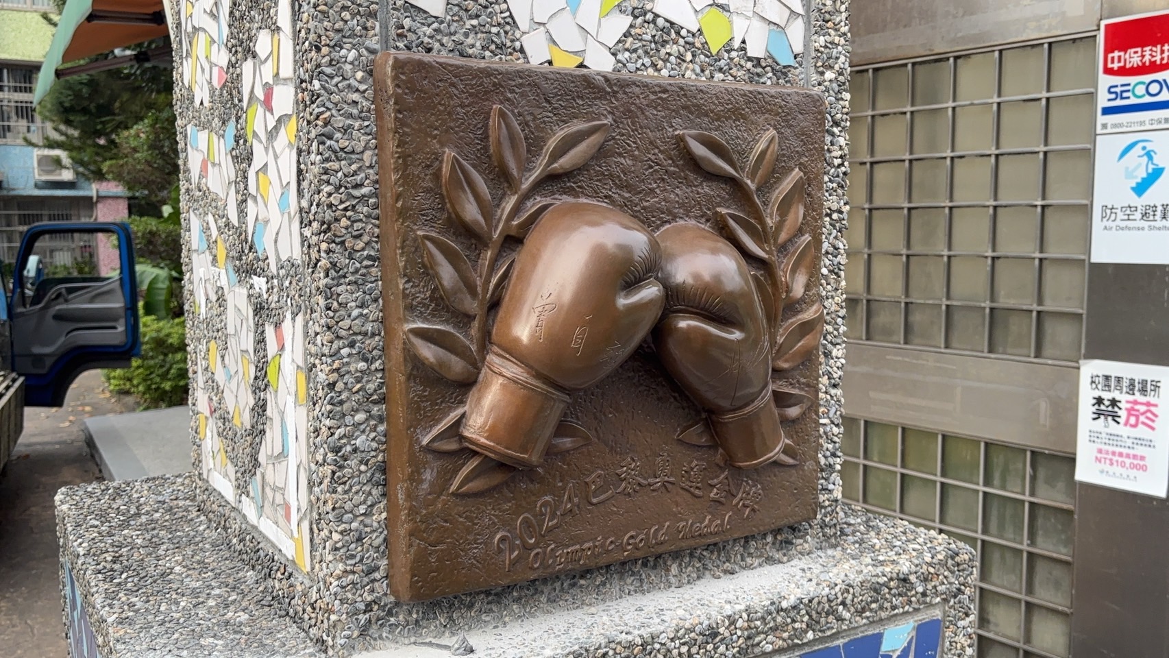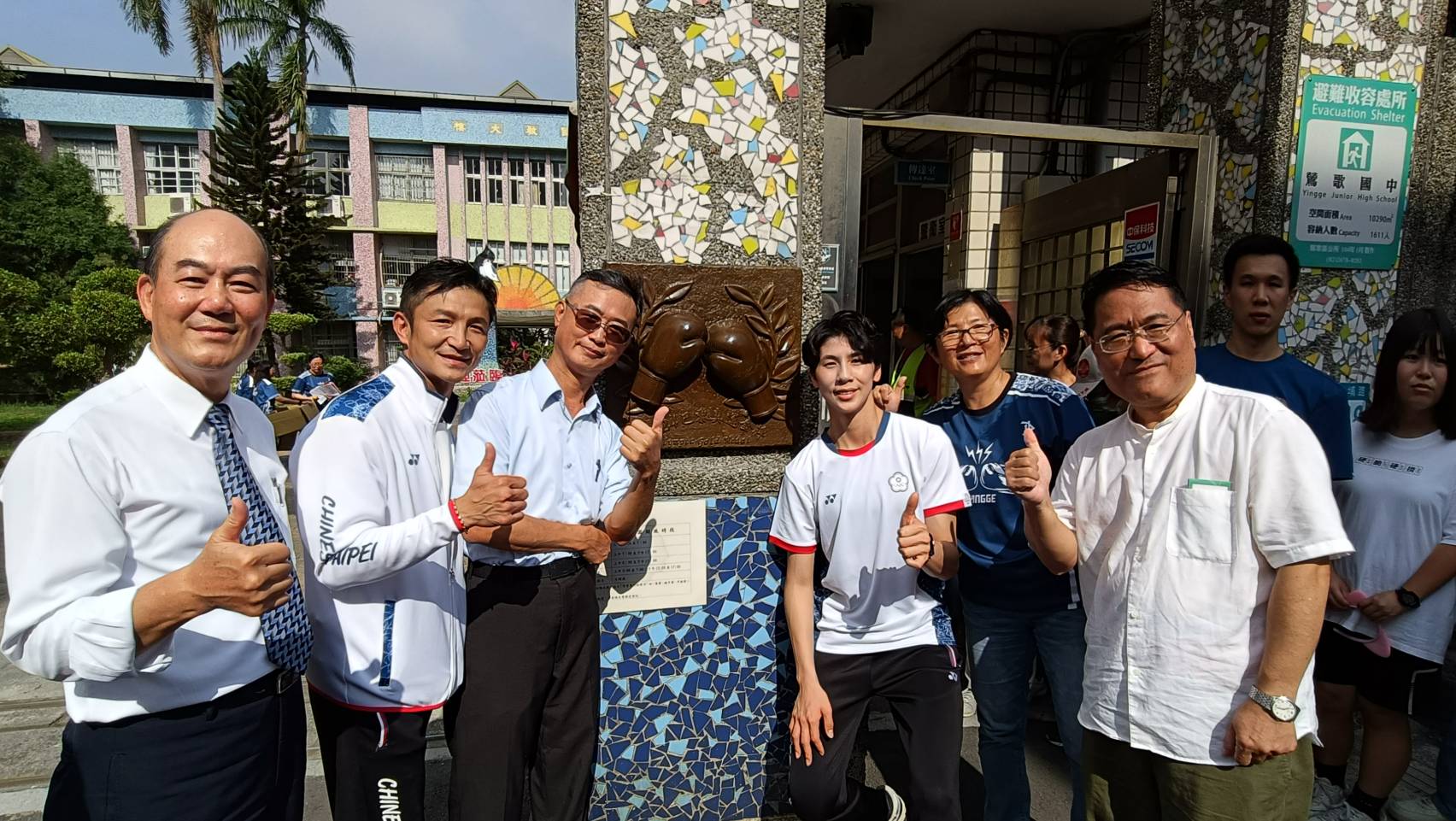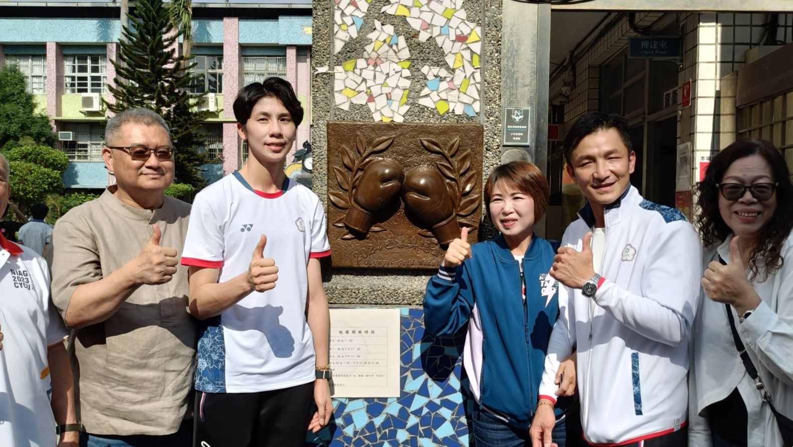 設置地點:鶯歌國中 材質:黃銅 時間:2024 以一雙由桂冠烘托的拳擊手套為設計主體,其上更鐫刻著林郁婷選手與教練曾自強老師的親筆簽名,寓意深遠。 「拳」與「全」諧音,象徵著教育的目標,激勵莘莘學子勇於探索自我的獨特天賦,開創無限可能的未來。 設計:金唐山設計工程 製作:金唐山設計工程