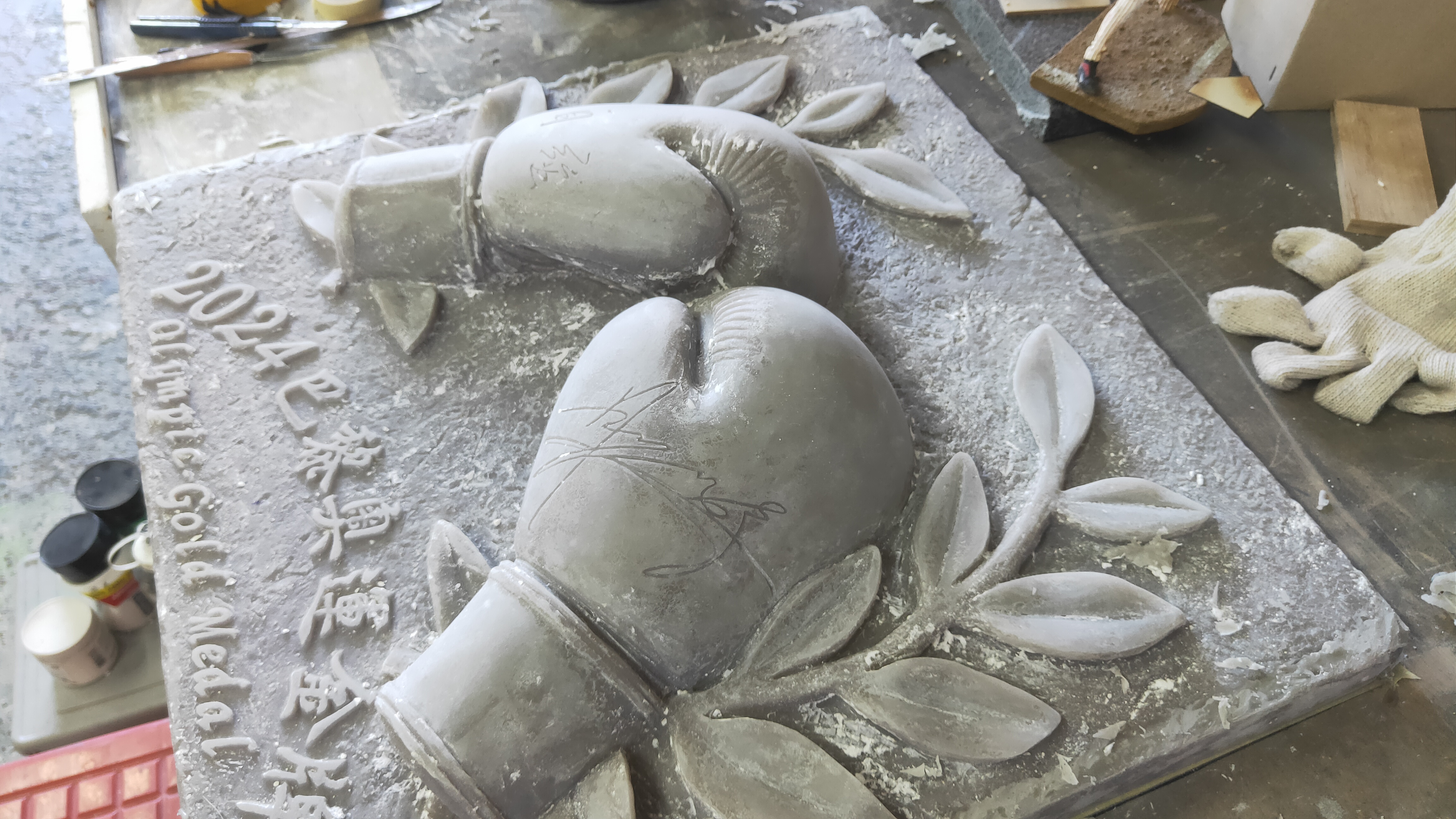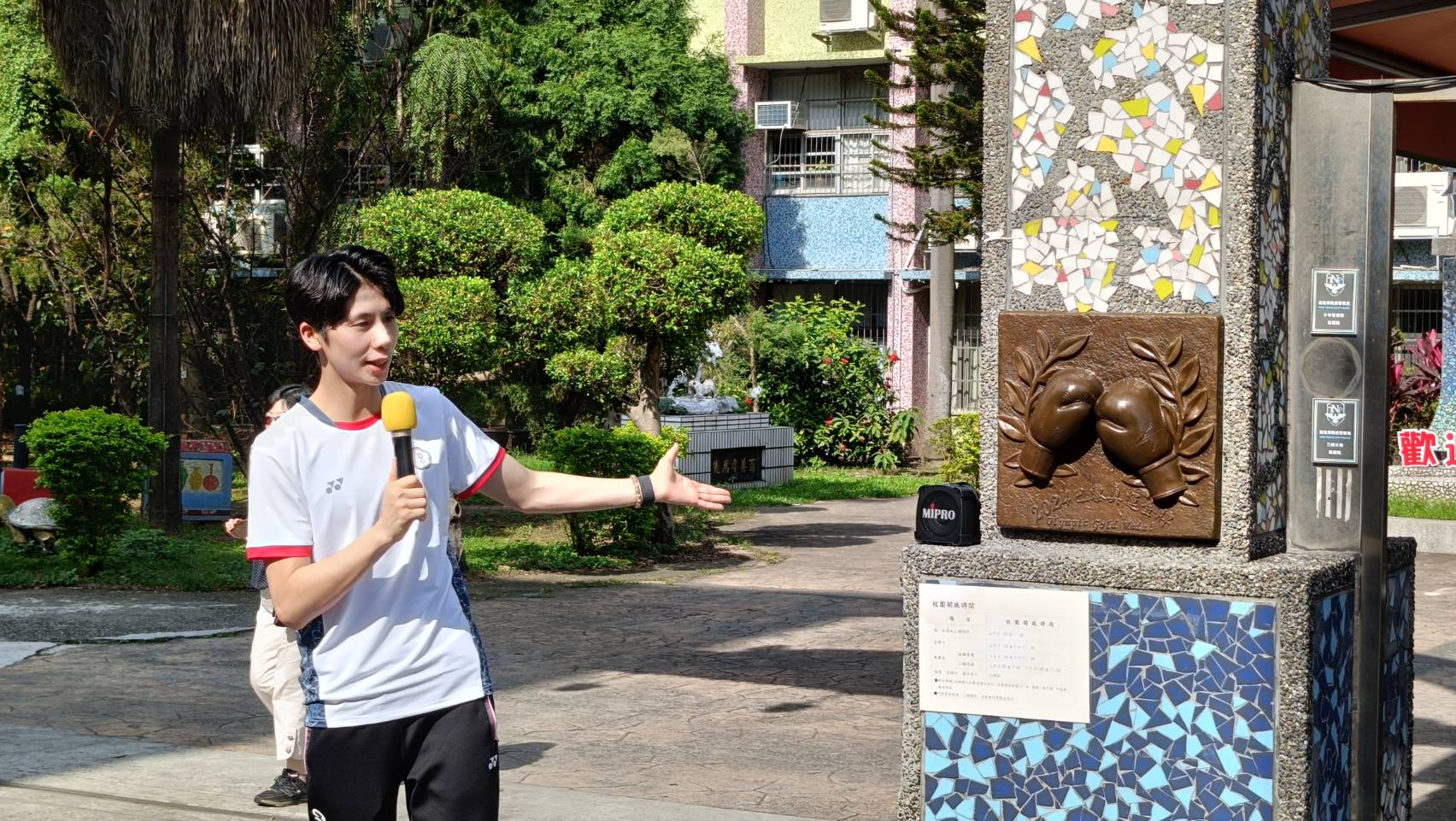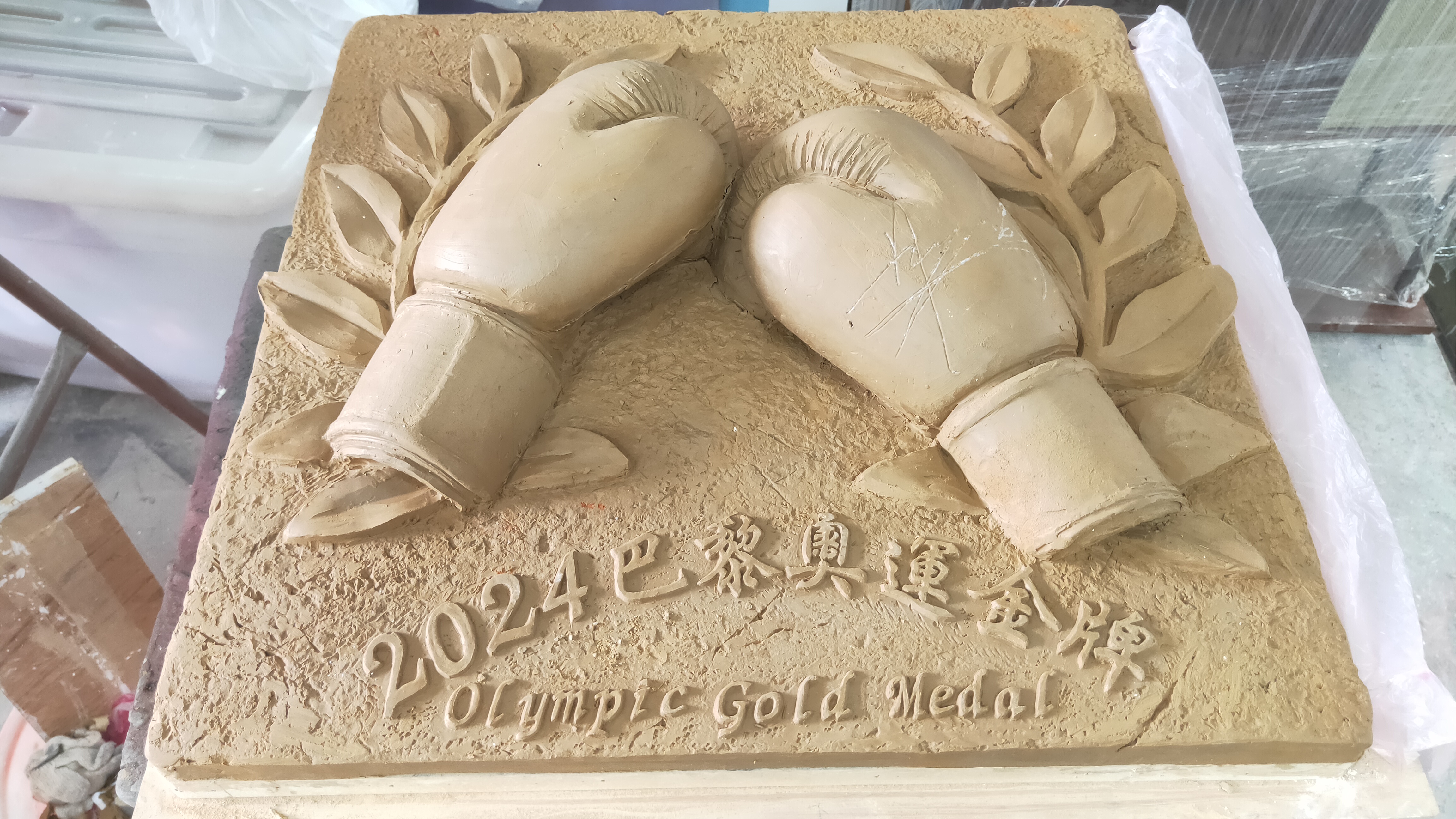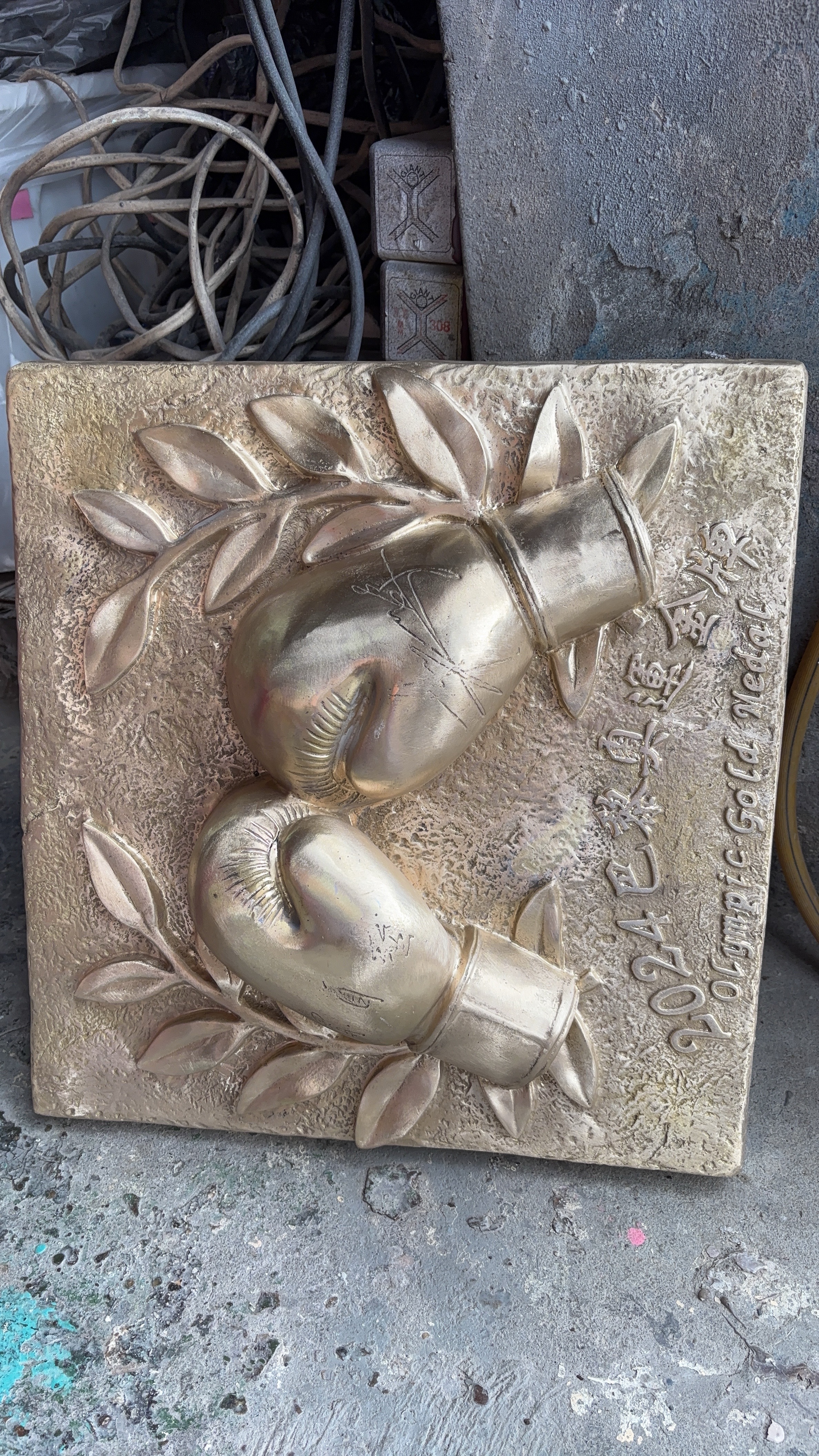 設置地點:鶯歌國中 材質:黃銅 時間:2024 以一雙由桂冠烘托的拳擊手套為設計主體,其上更鐫刻著林郁婷選手與教練曾自強老師的親筆簽名,寓意深遠。 「拳」與「全」諧音,象徵著教育的目標,激勵莘莘學子勇於探索自我的獨特天賦,開創無限可能的未來。 設計:金唐山設計工程 製作:金唐山設計工程