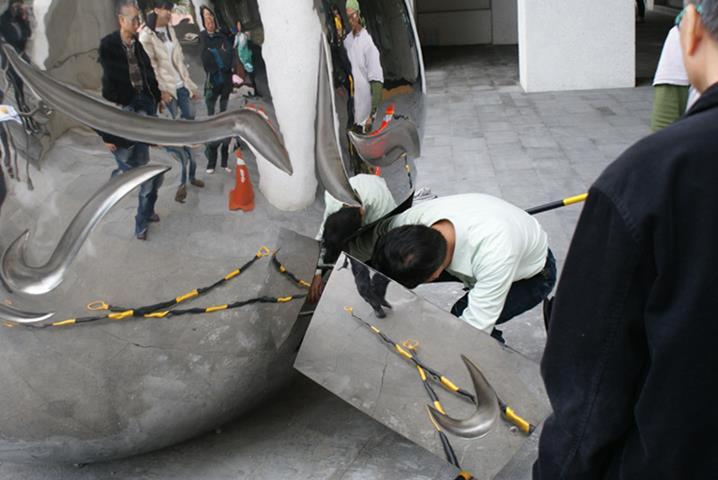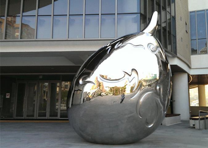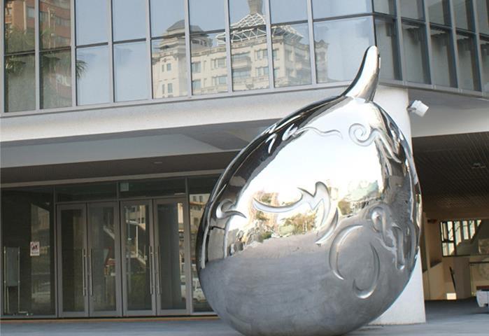 材質:不鏽鋼烤漆 時間:2011 創作意涵: 初進陽明之學子,如同飽滿圓渾的種子,