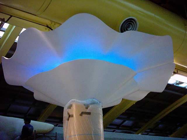 設置定點:小碧潭捷運站 原型:保麗龍 材質:FRP 時間:2005 創作意涵: 波浪的雲朵造型,被巧妙的至於柱子頂端,讓整個室內空間,也隨之寬廣,猶如身處雲中,隨著波浪的律動,讓月台多添了一股活潑的氣氛。 設計:麻粒試驗所-江洋輝 製作:金唐山設計工程 監造:台北市捷運局