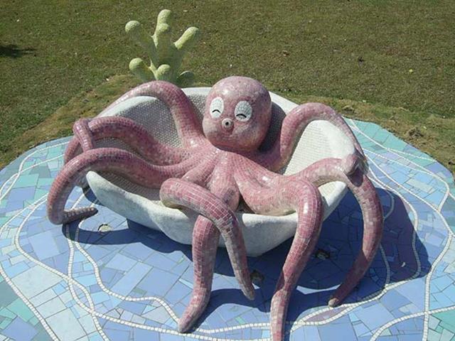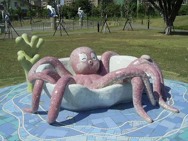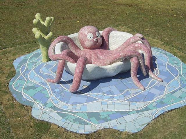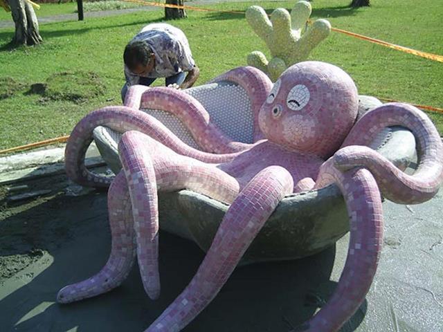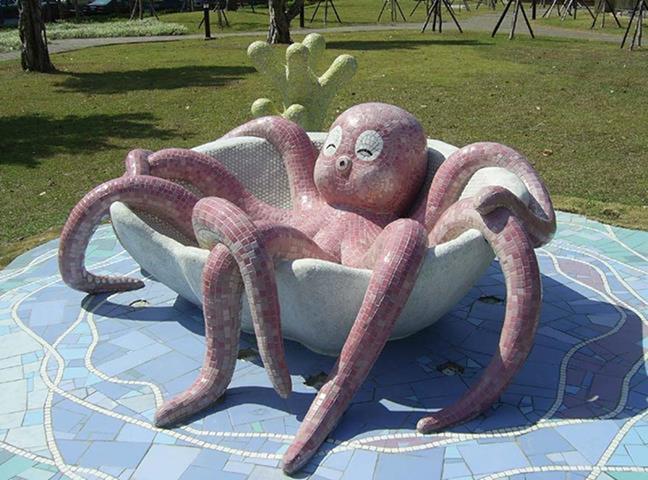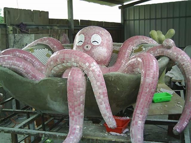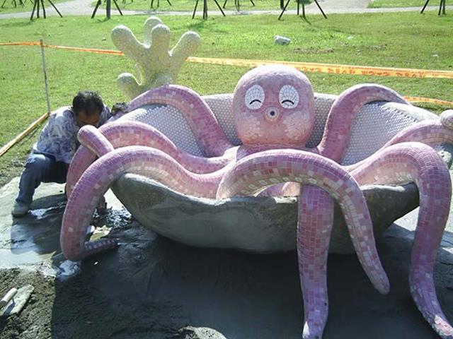 設置定點:三峽 原型:水泥雕塑 材質:馬賽克拼貼 時間:2005 設計:鄭聰文 製作:金唐山設計工程、鄭聰文 監造:遠雄集團